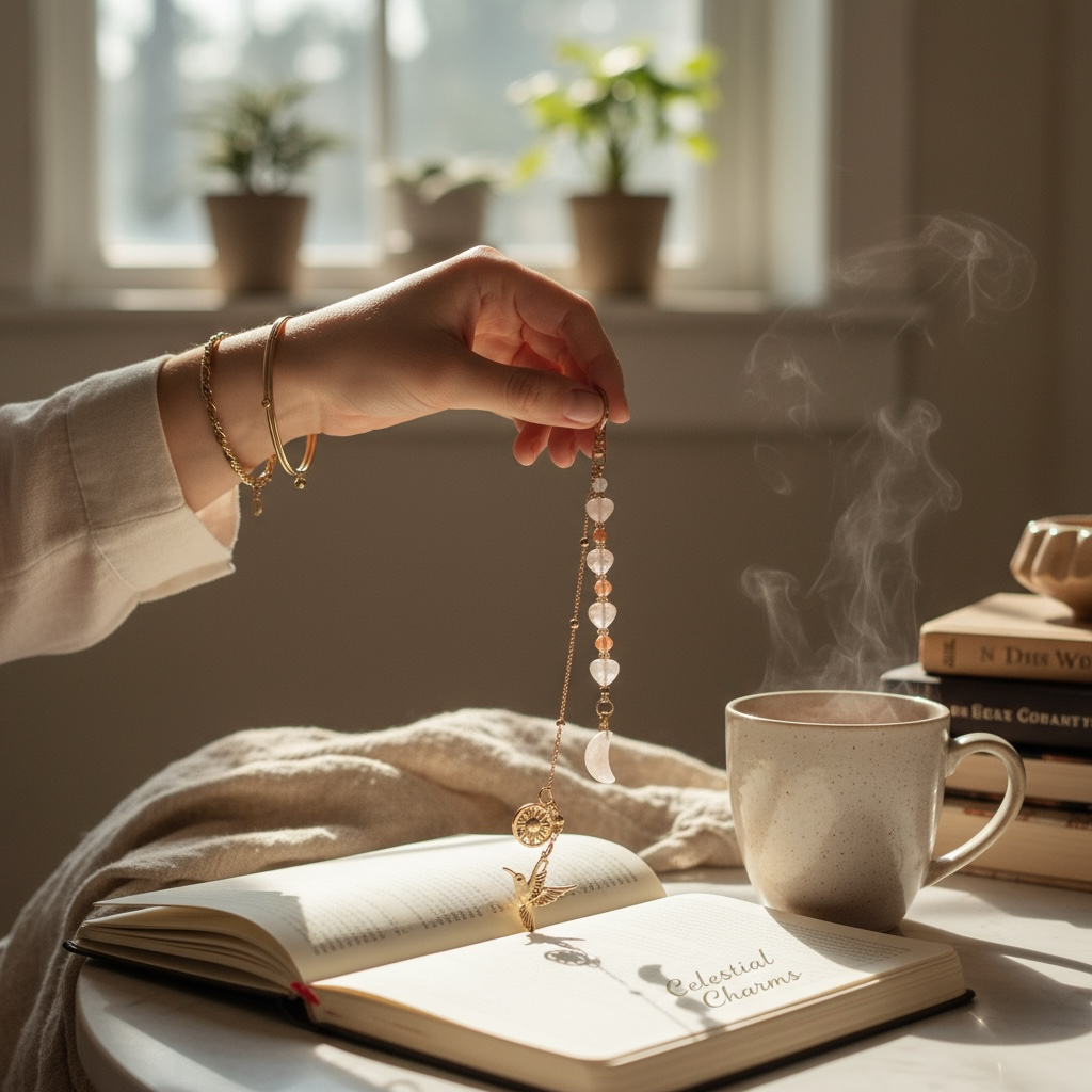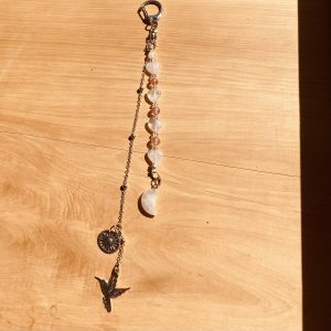 Accesorio para bolso con cuarzo rosado y colgante de colibrí