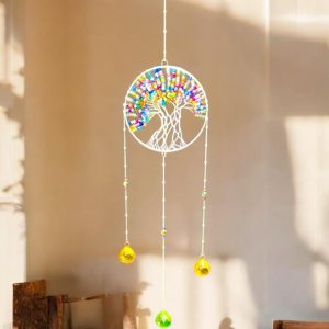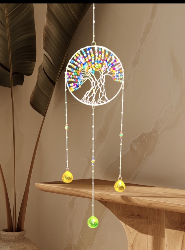🌳 Atrapasol Árbol de la Vida multicolor con cristales austriacos y tres prismas✨ llena tu espacio de energía, luz y alegría.