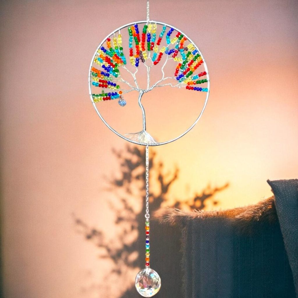 Árbol de la Vida multicolor, símbolo de energía .Sus cristales de origen austriaco y brillantes colores dan a tu espacio luz vibrante y armoniosa.”