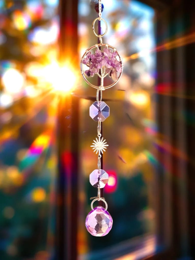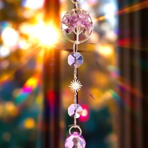 Delicado Arbol de la vida con amatistas y cristales octagonales de origen checo.