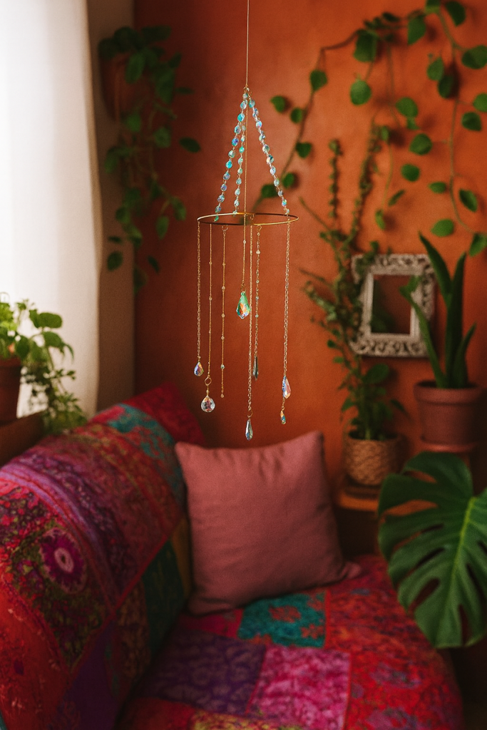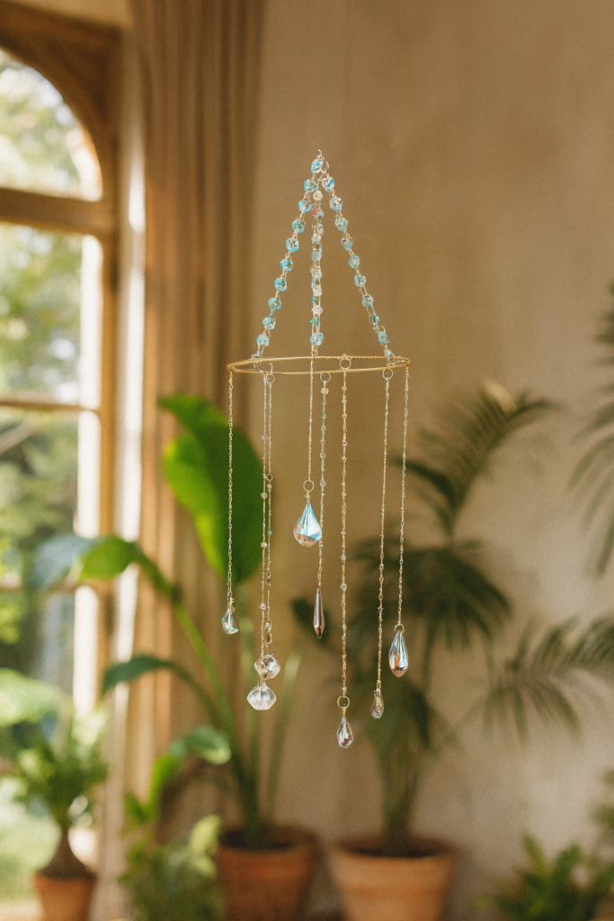 💎 Atrapasol de cristales austríacos en cascada hecho a mano con delicadeza, proyecta destellos únicos que llenan tu hogar de elegancia y armonía.