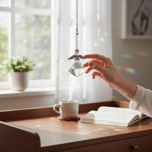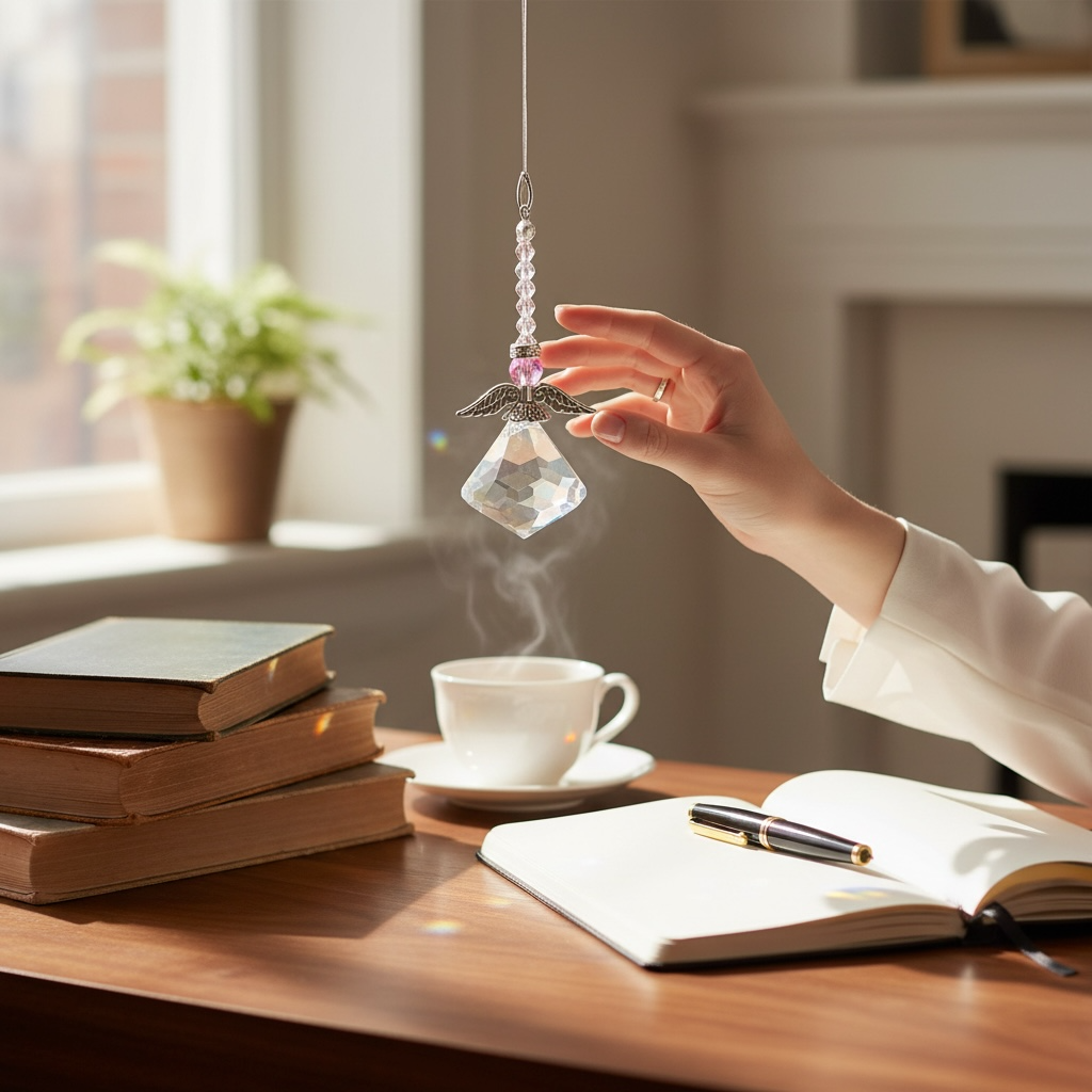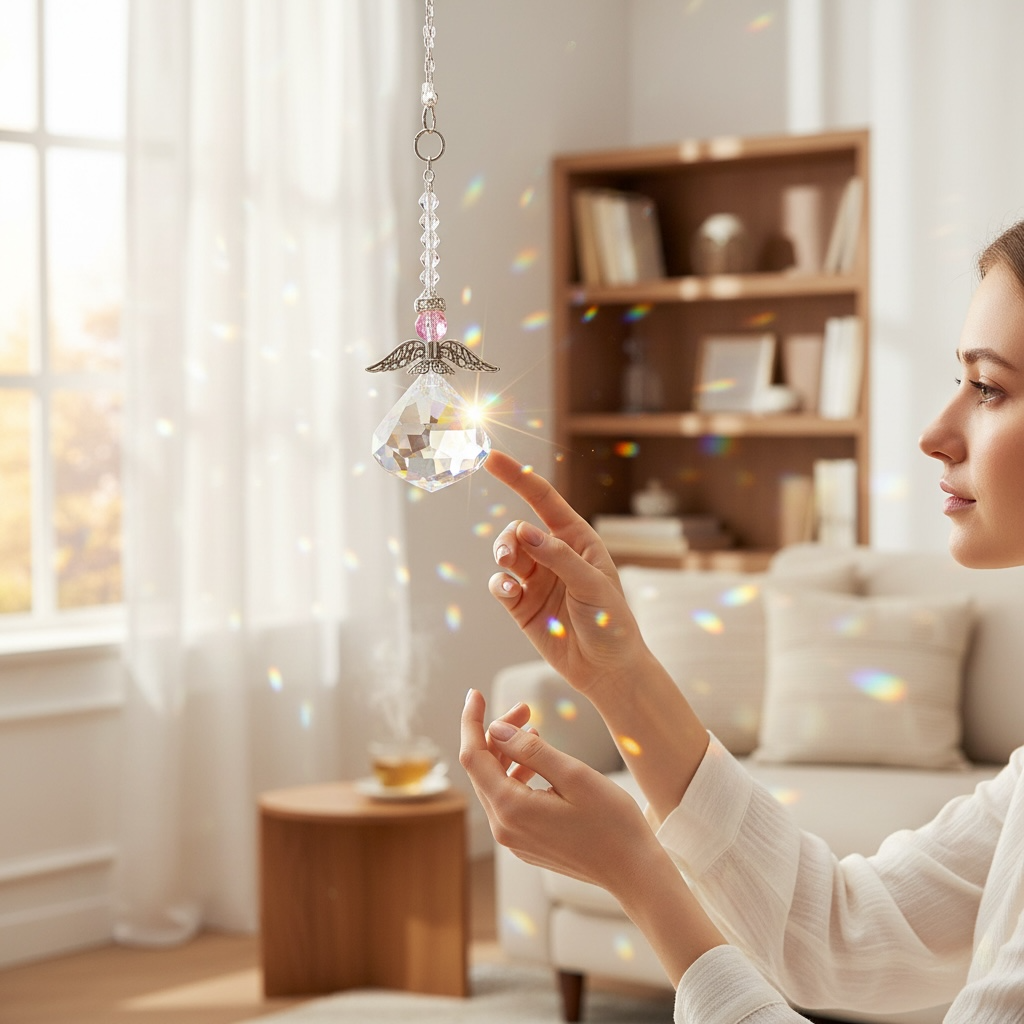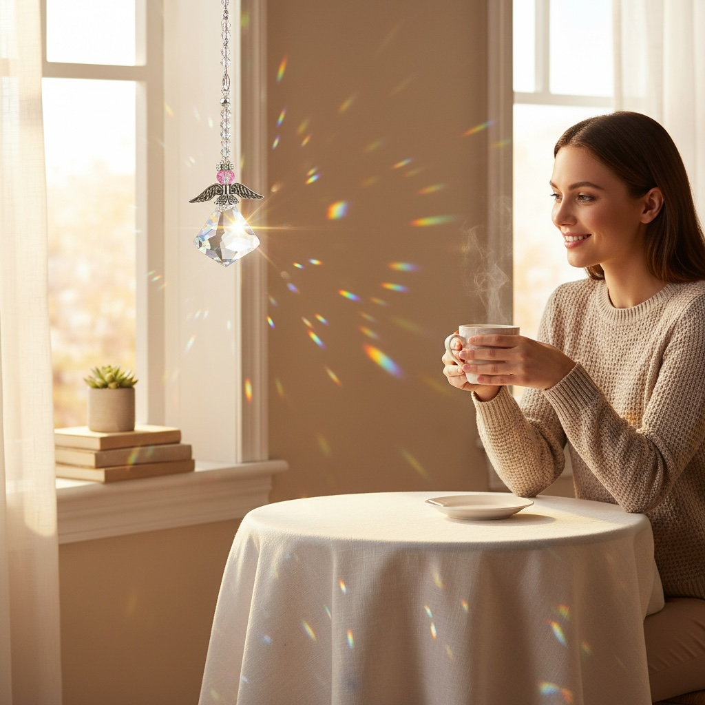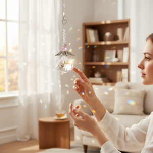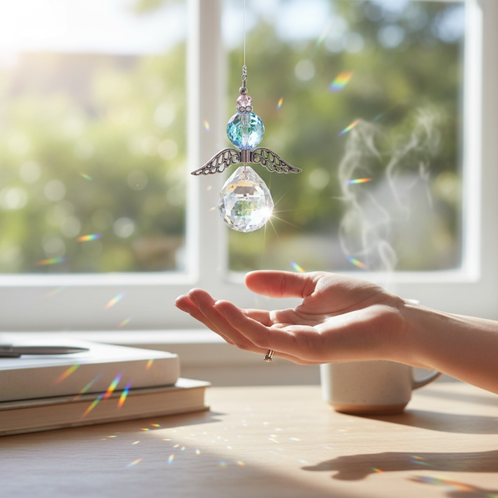 Ángel de Luz con cristal facetado con destellos brillantes que iluminan y armonizan cualquier espacio dando paz💫
