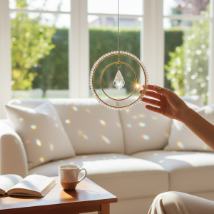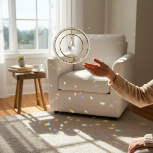 💎✨ Atrapasol de aros dorados con cristales austriacos y prisma de cristal arcoíris 🌈 hecho a mano, proyecta destellos mágicos que llenan tu hogar de elegancia, luz y energía☀️