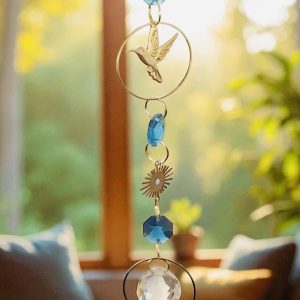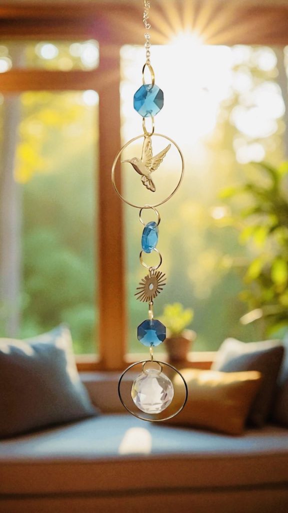 🐦💙 Atrapasol colibrí con cristales octagonales turquesa y prisma de cristal, ✨ hecho a mano, símbolo de libertad y alegría, proyecta destellos mágicos que llenan tu hogar de luz y energía positiva. 🌈