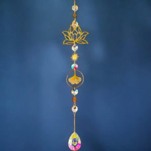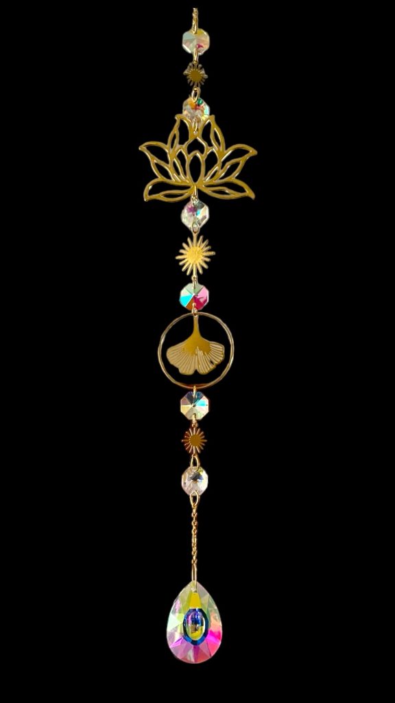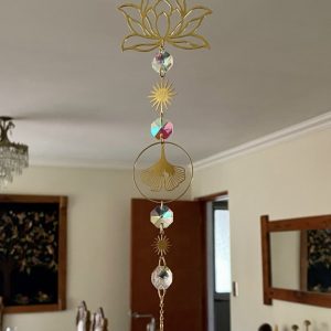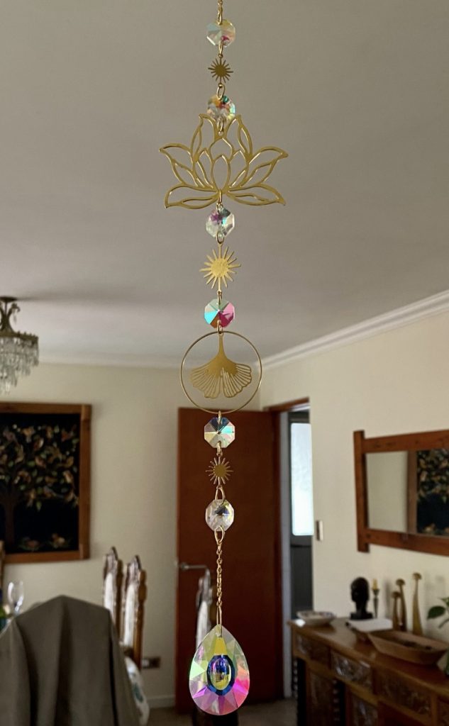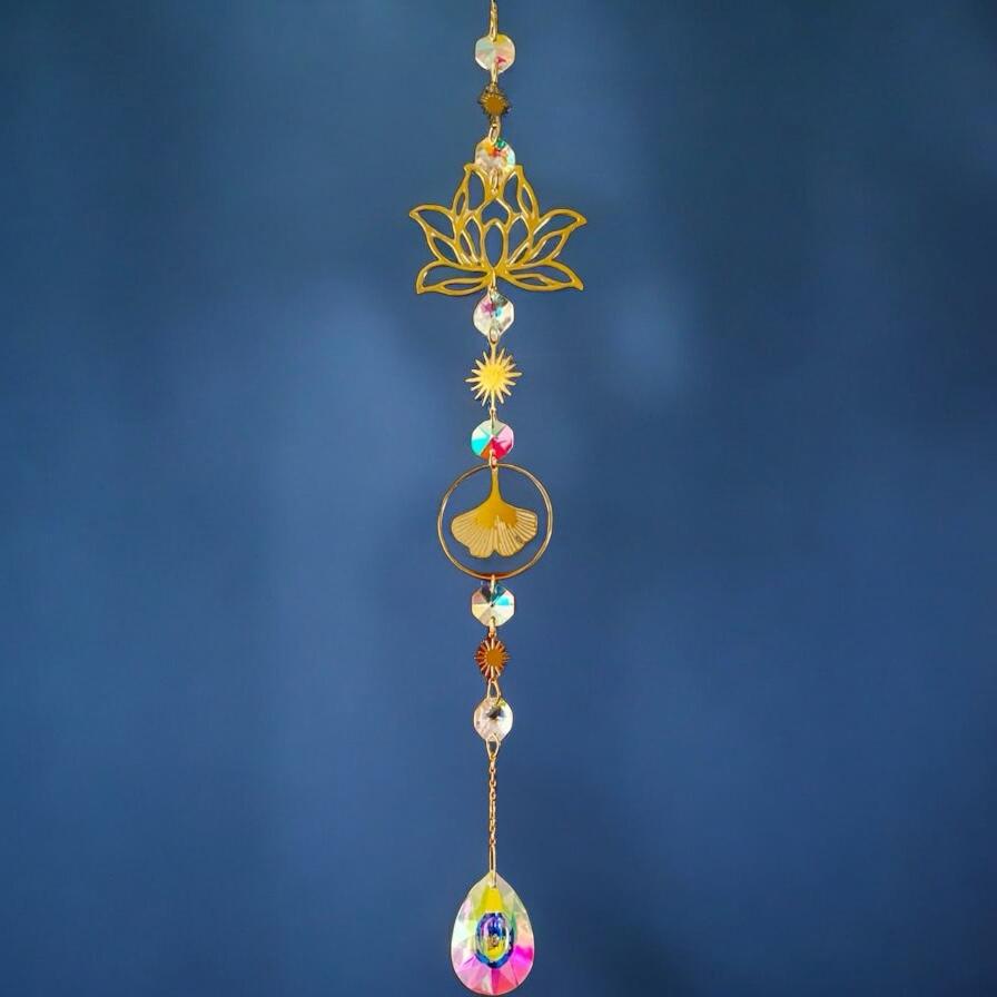 🌟 Atrapasol loto dorado con cristales austríacos ✨ hecho a mano con dedicación, refleja destellos mágicos que llenan tu hogar de luz, color y armonía.