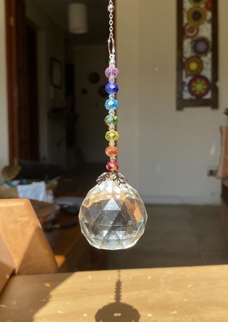 Colgante de loto con cristales en los siete colores del arcoíris, que llenan tu espacio de luz, energía y vibrantes reflejos. 🌈✨.