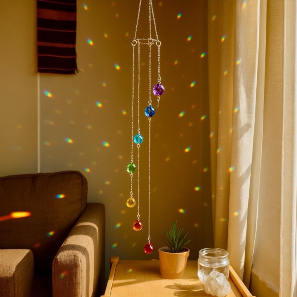 ✨ Hecho a mano con esferas de cristal en colores del arcoíris.