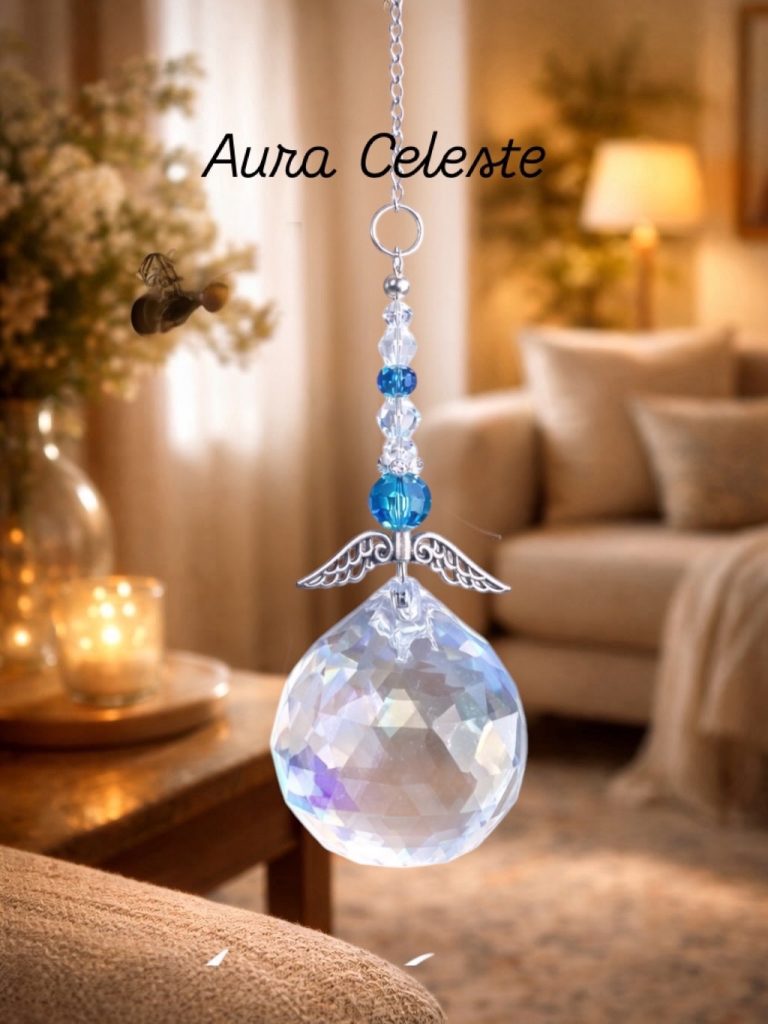 “Aura Celeste” representa la conexión con la paz interior y la protección espiritual. Sus tonos azules elevan la energía del entorno, creando un espacio de equilibrio y bienestar.