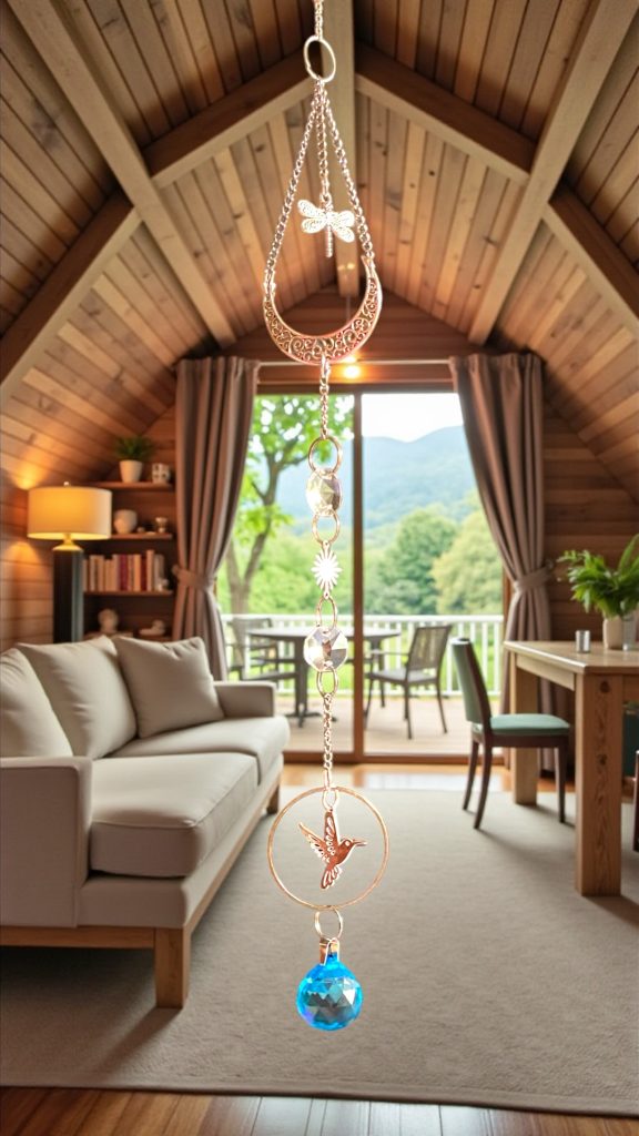Hermoso atrapasol artesanal que integra la energía del colibrí y la libélula, símbolos de alegría, transformación y renacimiento. Sus cristales capturan la luz creando reflejos que armonizan el ambiente, mientras la libélula aporta liviandad y cambios positivos. Ideal para ventanas, terrazas o espacios donde quieras atraer calma, movimiento y buena energía.
