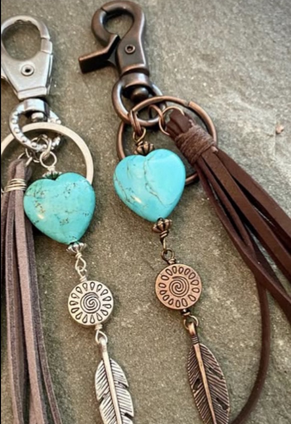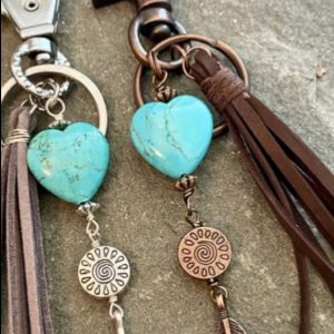 Llavero elaborado con corazón de turquesa ,cuero y delicadas fornituras.