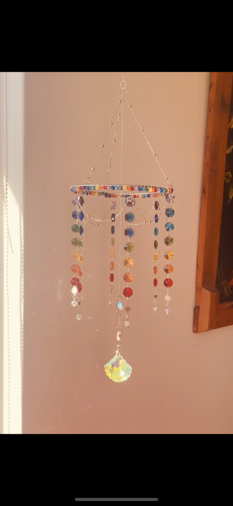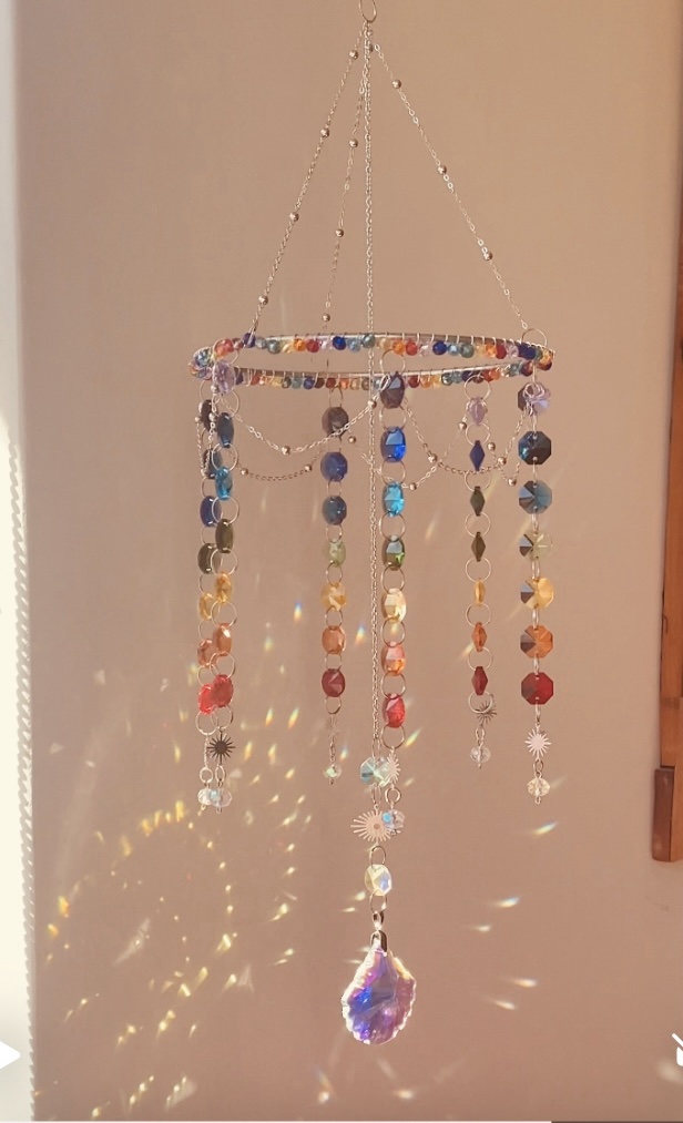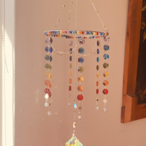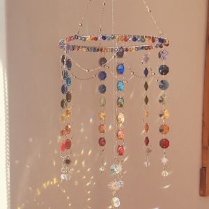 Movil elaborado con cristales octagonales de 14mm y cristales planos de 6 mm en siete colores.